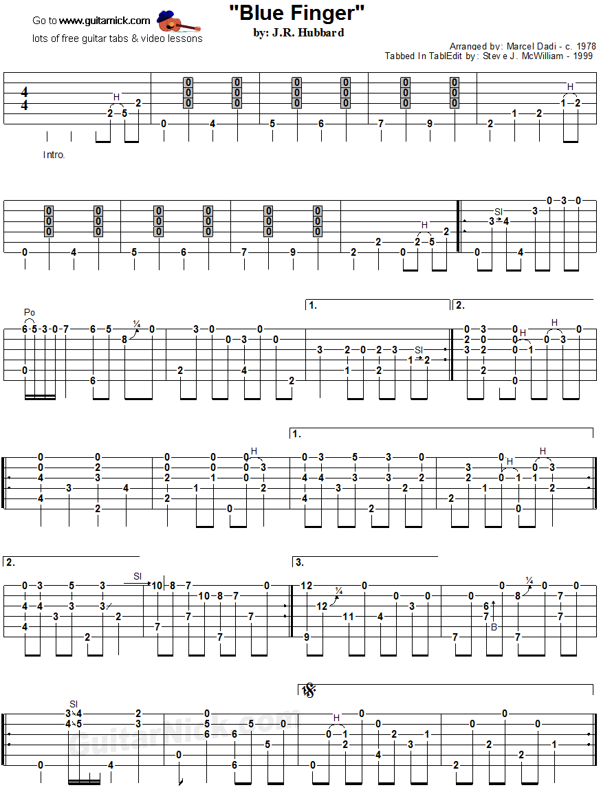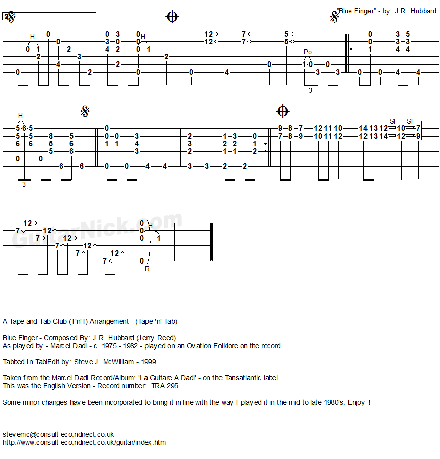 This is the fingerstyle arrangement as played by Marcel Dadi of the nice jazzy guitar piece written by Jerry Reed. Listen to the audio and play the free tablature.