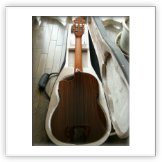 Soundboard Solid Sitka spruce with classical-guitar style fan bracing